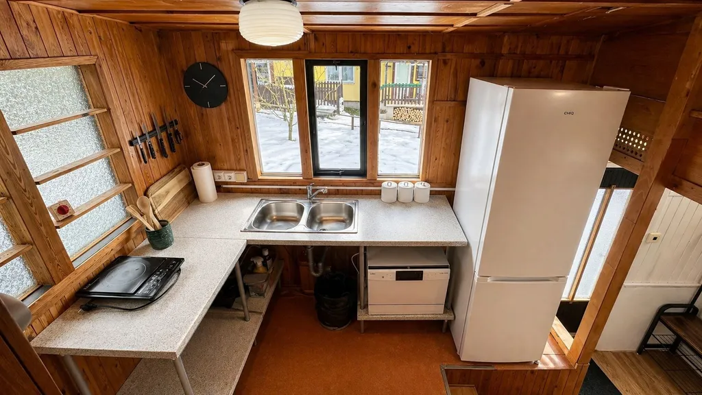 Vytápění je zajištěno krbovou vložkou na tuhá paliva. Do chaty je zavedena užitková voda, k dispozici je kuchyňská linka včetně myčky nádobí. Odpad je sveden do septiku.