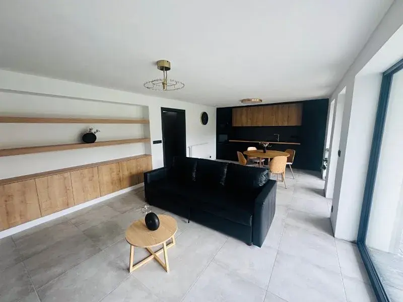 1353 2+kk Jihlava, ul. Okrajová, kompletně a nadstandardně zrekonstruovaný zděný byt v přízemí řadového rodinného domu s terasou a zahrádkou. Byt je nově vybudován a je kompletně zařízený. Byt se skládá z prostorné předsíně, velkého obývacího pokoje s kuchyňským koutem, ložnice a koupelny s WC ( celkem cca 55 m2 ), dále k bytu náleží velká komora cca 10 m2, terasa cca 10 m2 a zahrádka cca 30 m2 přímo přístupné z bytu. Vybavení: nová kuchyňská linka včetně spotřebičů, jídelní stůl, čtyři židle, gauč, obývací skříňky, manželská postel, kompletně vybavená koupelna s WC, trojdílná šatní skříň. PENB „G“. Volný IHNED - nájemné 14.000,- Kč/1 měs. + energie cca 4.000,- Kč/1 měs. + kauce 28.000,- Kč + jednorázová provize RK 14.000,- Kč