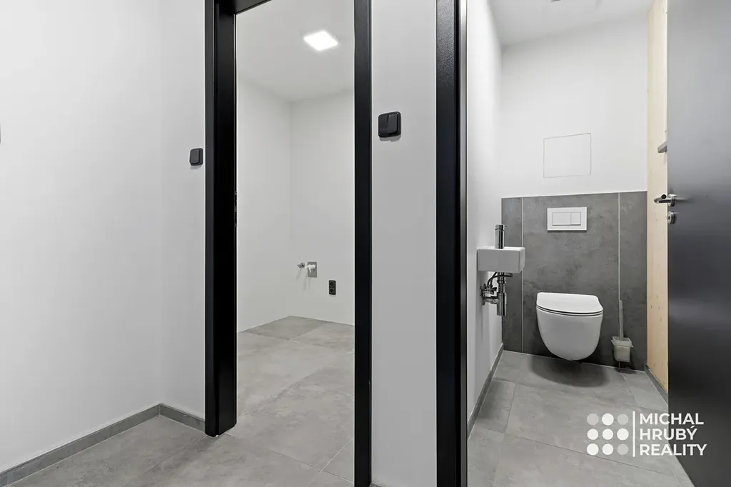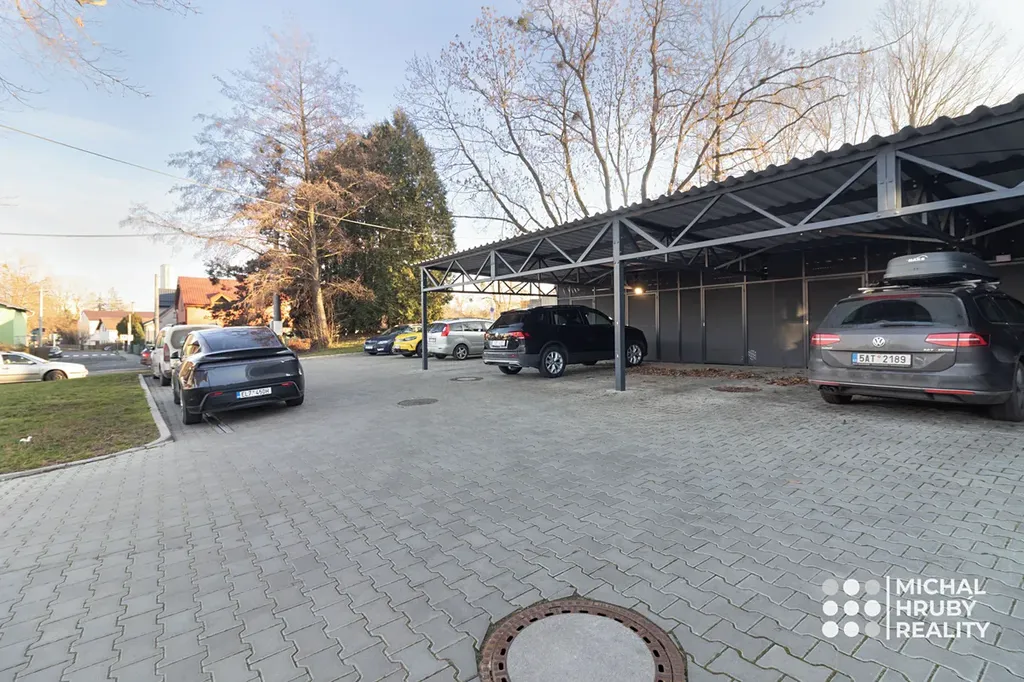 V rámci ceny máte také vlastní kryté parkovací stání se sklepní kójí přímo u domu. Parkoviště je dostupné pouze pro rezidenty. Ve spodním patře jsou dva komerční prostory – kancelář a ordinace dětského lékaře.