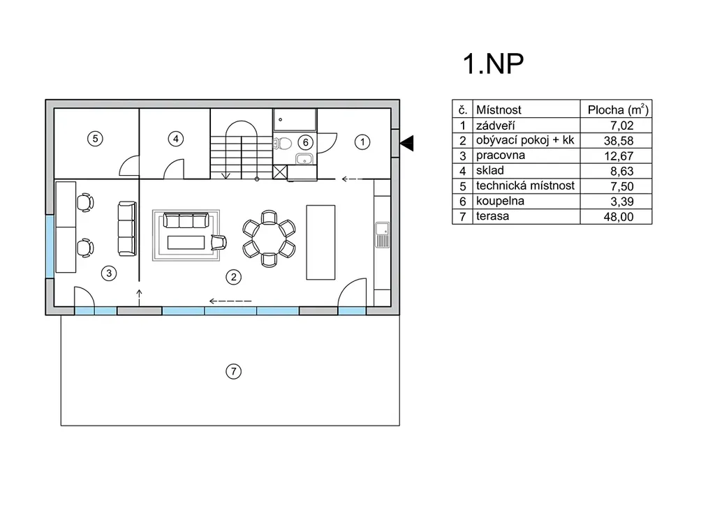 • světlý a vzdušný interiér s orientací obytných místností na jihozápad