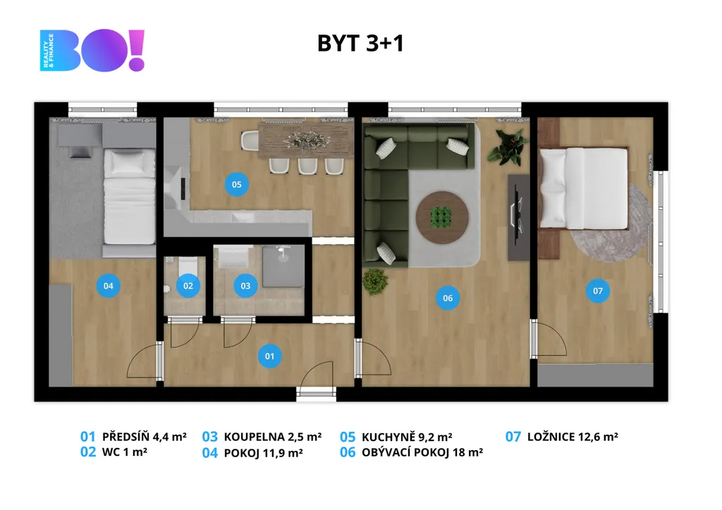 BO! Reality s potěšením představuje slunný byt 3+1 o výměře 60 m² na ulici Nádražní v Ostravě, kde můžete začít psát svůj nový příběh.