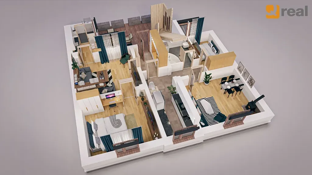 Přízemí je rozděleno na dva byty 2+1 se společnou prostornou verandou a přes tuto je pak vstup po schodech do podkroví o vel. 3+1 s balkonem a komorou. Lze zde vybudovat terasu se vstupem přímo z obývací části.