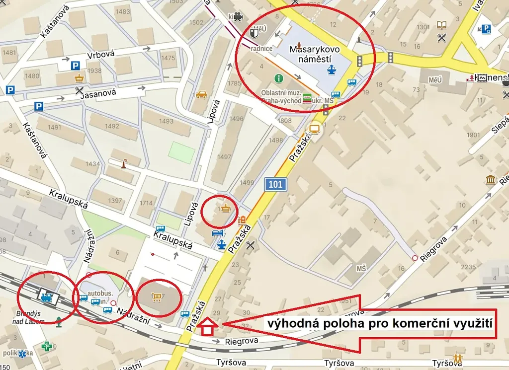 + výhodná poloha pro podnikání - v bezprostřední blízkosti autobusové a vlakové nádraží, supermarket, jiné obchody, náměstí