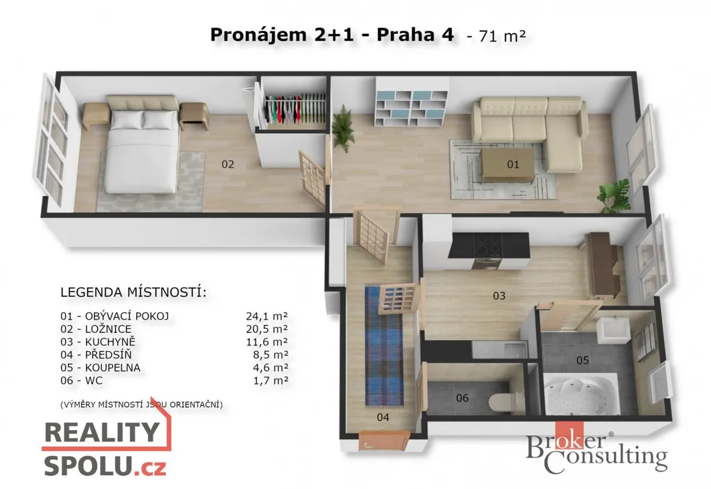 K dlouhodobému pronájmu nabízíme prostorný a velmi dobře dispozičně řešený byt 2+1 o velikosti 71 m², který se nachází ve 2. patře domu v klidné části Nuslí, v ulici Rostislavova.