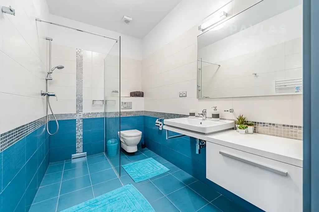 Výjimečnost této nemovitosti podtrhuje soukromé wellness centrum. Přímý vstup na terasu je zajištěn nejen z wellnessu, ale také z obývacího pokoje a dolní ložnice, takže si maximální pohodlí a propojení s exteriérem užijete opravdu v každé situaci. Součástí wellness je vyhřívaný bazén s protiproudem, jacuzzi i autentická finská sauna. Chvíle zde se změní v každodenní zážitek absolutní relaxace.