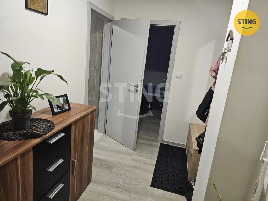 Dispozice bytu tvoří prostorná vstupní chodba, obývací pokoj s kuchyňským koutem, samostatná ložnice a koupelna s WC. Byt působí vzdušně, je prakticky řešený a vhodný jak k vlastnímu bydlení, tak i jako investiční příležitost.
