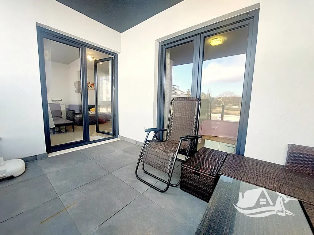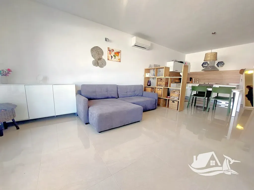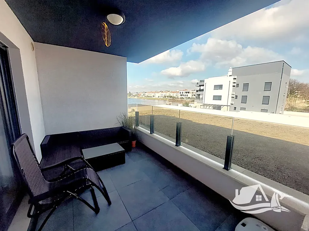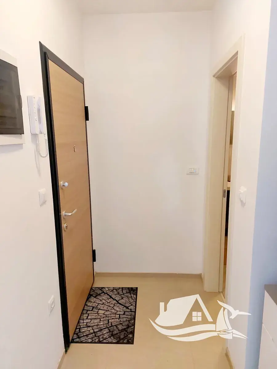 Apartmán se nachází v prvním patře a nabízí promyšlenou dispozici. Vstupní chodba vede do vzdušného obývacího prostoru propojeného s moderně vybavenou kuchyní a jídelnou. Ložnice je dostatečně prostorná a poskytuje klidné zázemí pro odpočinek. Elegantní koupelna je řešena v nadčasovém stylu a splňuje nároky na komfortní každodenní užívání. Dominantou bytu je prostorný balkon, který nabízí příjemné místo pro ranní kávu i večerní posezení v typické středomořské atmosféře.