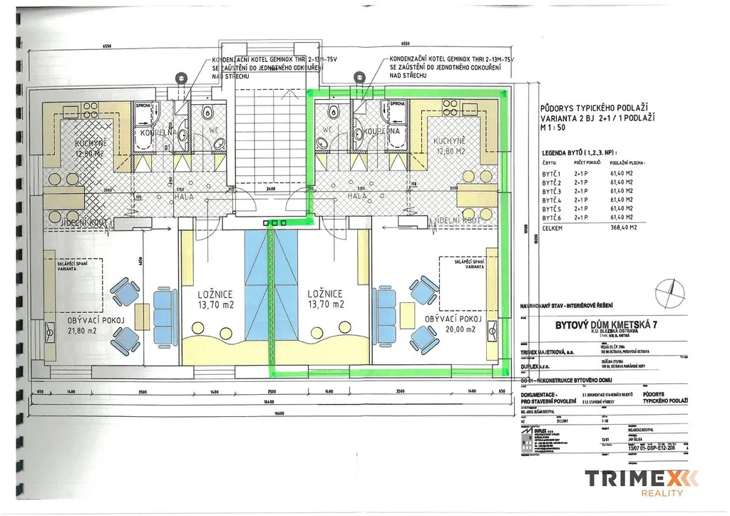 Nabízíme ke koupi bytovou jednotku 2+1 s celkovou výměrou 61 m² v klidné části Slezské Ostravy, v ulici Kmetské. Byt se nachází v poctivém cihlovém domě se šesti bytovými jednotkami. Dům prošel před dvaceti lety kompletní rekonstrukcí, včetně interiérů. V domě je pouze šest bytových jednotek 2+1. U domu je zahrada na obecním pozemku s posezením. Parkování je na ulici. Byt se nachází ve druhém nadzemním podlaží. V chodbě, kuchyni, koupelně a WC je položená dlažba. V ložnici a obývacím pokoji je plovoucí podlaha. Pokoje jsou prostorné a dobře ústavné. Kuchyně má kuchyňskou linku ve tvaru „L“ s dostatkem místa pro jídelní kout. V koupelně je vana, umyvadlo a plynový kotel pro vytápění a ohřev vody. WC je samostatné s oknem. V suterénu jsou sklepy a společný prostor. Příslušenstvím bytu je prostorný sklep o výměře 20 m².