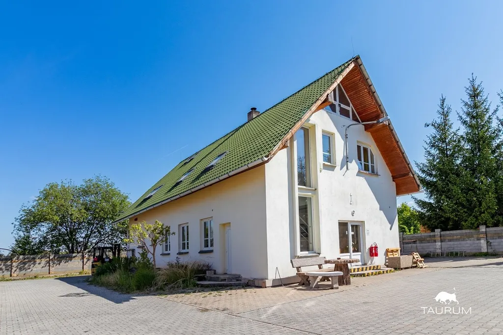 1 dvoupodlažní částečně podsklepená zděná administrativní budova s kancelářemi a zázemím (šatny, sprcha, wc, kuchyňka) o celkové podlahové ploše 285 m2, budova je ve vynikajícím stavu