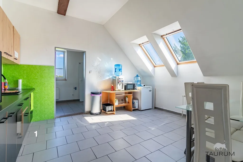 2 kancelářské prostory ve zděné budově o celkové výměře 124 m2, velmi dobrý stav, kuchyňka, umývárna