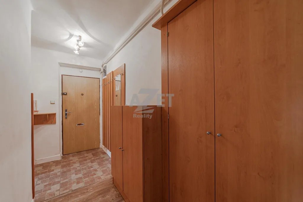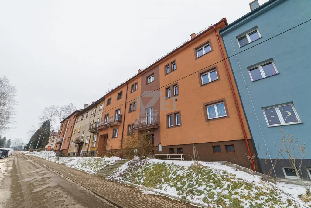 Naše společnost Vám exkluzivně nabízí k prodeji byt o dispozici 2+1 v osobním vlastnictví ve 2NP ze tří. Celková výměra prodávané nemovitosti včetně rozlehlého sklepa činí 73 m2. Částečná rekonstrukce bytové jednotky se týkala především kuchyně a zavedení el. rozvodů v mědi v celém rozsahu. Zděné jádro. Průchozí pokoje. Keramicky obložená koupelna se zapuštěnou vanou, WC Kombi (oddělený příčkou), vyhrazeným místem pro pračku a el. bojlerem (75 l-ohřev na teplou vodu). Rohová kuchyňská linka se s jídelním stolem a policemi. Kombinované podlahy (dlažba/parkety/PVC linoleum). Protipožární vstupní dveře. Vestavěná šatní/úložní skříň v ložnici. Další úložné prostory v předsíní díky další skříni a sousedící komory. Plastová okna s parapety. Připojení k internetu, společné anténě i satelitu, který je k dispozici. Vytápění místností je prováděno gamaty. Výhled na 2 světové strany (jih vs sever). Celková revitalizace obytného domu již proběhla. Nízký předpis záloh - 3267,-Kč. (roční přeplatky za vyúčtování služeb). V bezprostřední blízkosti zastávka MHD, mateřská školka a obchodní řetězec Hruška. Veškerá občanská vybavenost.