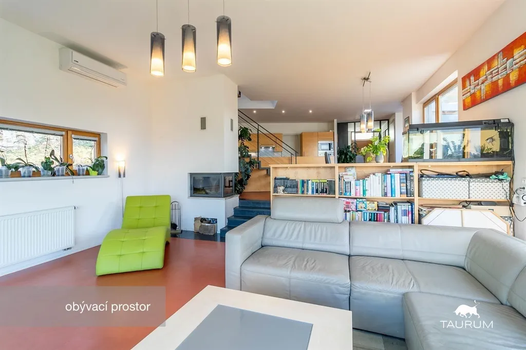 • V obývacím prostoru je trojstěnný krb s vyvložkovaným komínem