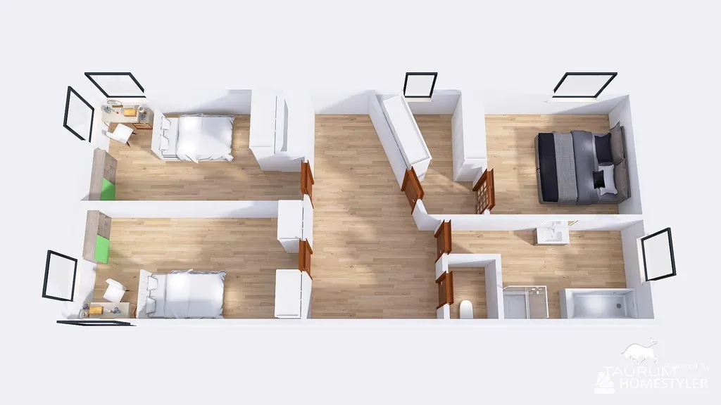 • Stavba je realizovaná systémem „two by four“ – dřevěná konstrukce + ocelové výztuže, tloušťka stěn je 31 cm (minerální izolace 140 mm + 100 mm)