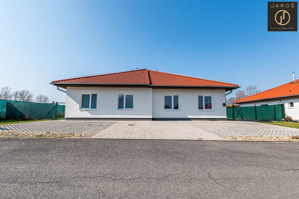 Dům byl kolaudován v květnu 2023 a je postaven z kvalitních materiálů, které zajišťují nízké provozní náklady a dlouhodobou životnost. Dispozice domu je velmi praktická a promyšlená. Po vstupu do nemovitosti vás přivítá prostorná chodba, ze které je přístup do tří ložnic, dvou koupelen a technické místnosti. Dominantou domu je světlý obývací pokoj s kuchyňskou linkou, vybavenou vestavnými spotřebiči, odkud je přímý vstup na terasu a udržovanou zahradu, ideální pro relaxaci i rodinné posezení.