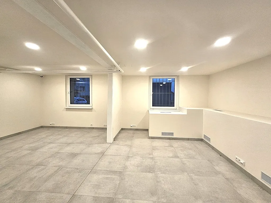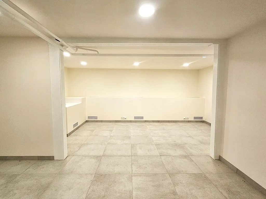 Prostor je po kompletní, právě dokončené moderní a vkusné rekonstrukci. Prostor sestává ze 2 otevřených místností, každá má okno zabezpečené mřížemi. U vchodových dveří je vybudována příprava na případnou kuchyňskou linku. V koupelně je sprchový kout, umývadlo se zrcadlem a vstup na samostatné WC. Na podlaze je velkoformátová dlažba. Prostor je vytápěný automaticky a zdarma díky rozvodům dálkového topení, které je umístěné v soklu s průduchy v zadní části prostoru. Díky tomu je v prostoru příjemné teplo a sucho bez měsíčních nákladů za vytápění. Parkování je možné na ulici (modré zóny) a nebo je možné si pronajmout až 2 garážová stání v suterénu sousedního domu.