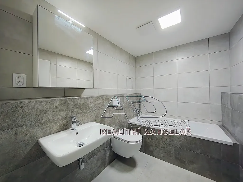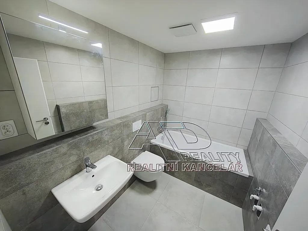 Byt dokončený v únoru_2026 (dosud nebydlená novostavba). Podlahy plovoucí laminátové / vinyl a keramická dlažba, v koupelně vana, závěsné WC. Přípojka pračky je umístěná v koupelně. V předsíni je pak dostatek místa pro úložné prostory – skříně. Další úložné prostory jsou k dispozici v rámci komory (sklepa) na patře bytu o výměře [3,6m2], který je přímo naproti vstupu do bytu. Kuchyňská linka včetně elektrické / indukční sklokeramické varné desky, zabudované trouby, mikrovlnné trouby a myčky nádobí (60cm). Topení ústřední (radiátory s termoventily a samostatným měřením), samostatné měření spotřeby teplé a studené vody (vodoměry) a elektřiny (elektroměr).