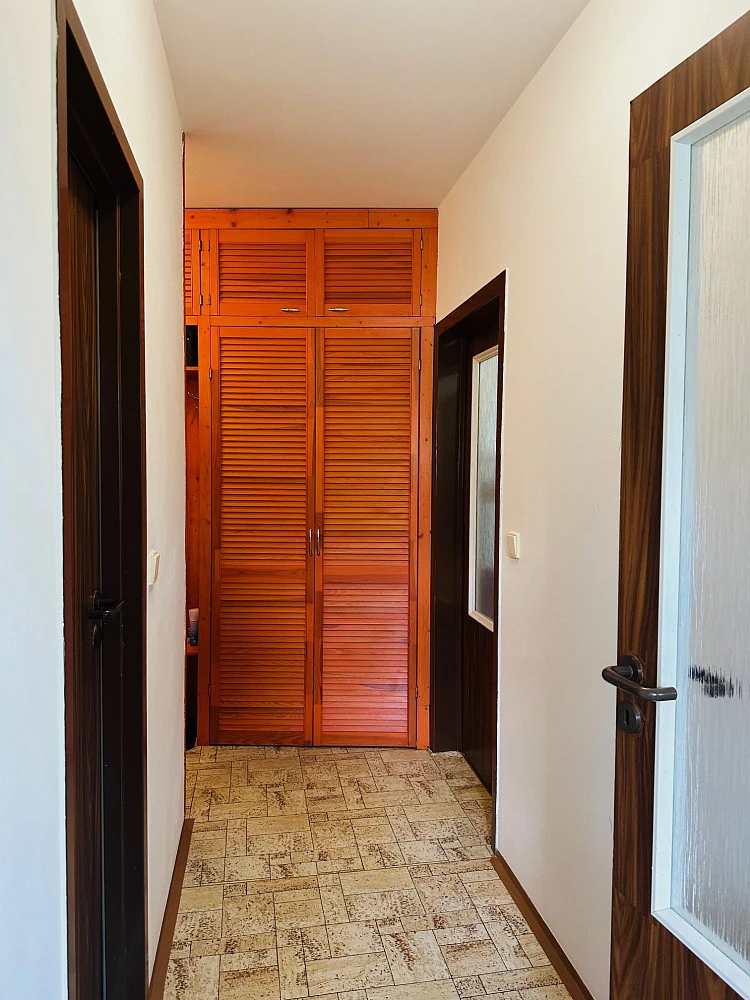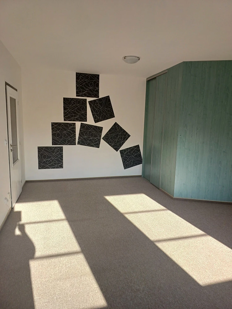 Dlouhodobý pronájem slunného podkrovního bytu 1+1 (42 m²) v posledním podlaží menšího bytového domu - vchod pouze s 12 byty, bez výtahu - 40 schodů. Jedná se o dům na samotném okraji místní zástavby / dokončen říjen 2001 - přímý výhled do lesa a louky - mimo příjezdovou dopravní komunikaci, mimo parkoviště - orientace jihovýchod.