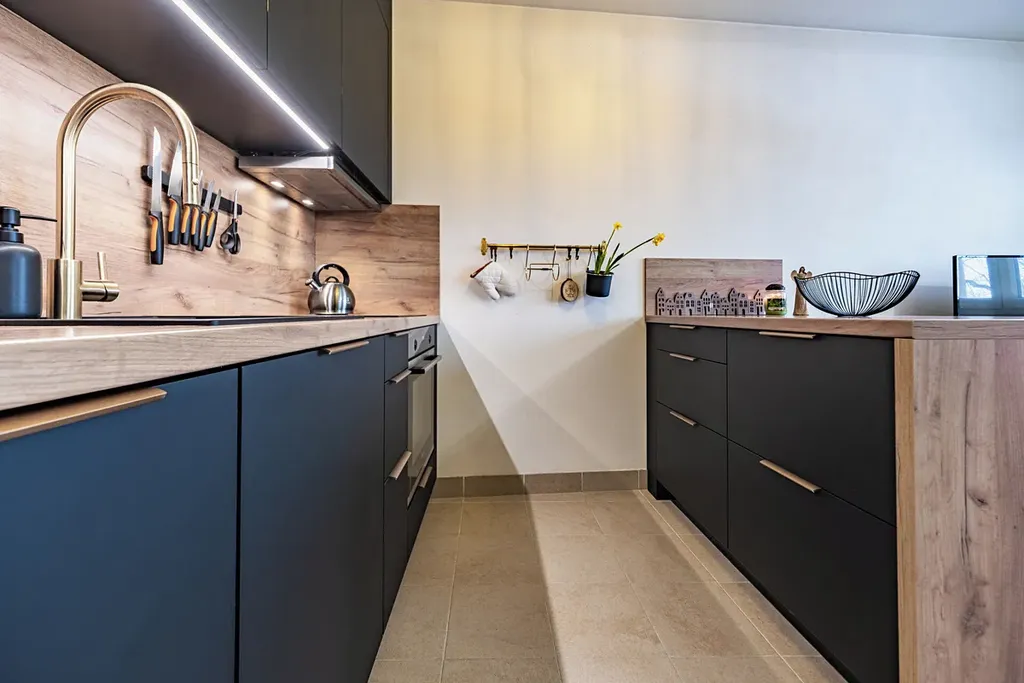 Nabízený byt se nachází ve 2. nadzemním podlaží cihlového domu a nabízí celkovou plochu 55,6 m², včetně zděného sklepa o velikosti 5,1 m². Dispozice bytu je prakticky řešená – světlý obývací pokoj s kuchyňským koutem, samostatná ložnice, koupelna s toaletou a předsíň tvoří příjemný a funkční celek. Veškerý nábytek je v celém bytě řešen truhlářem na míru, vše v nadstandardním provedení.