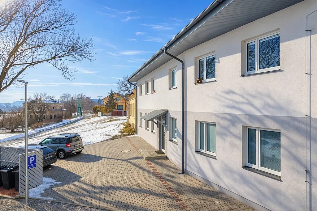 K domu náleží tři parkovací stání na vlastním pozemku, přičemž jedno parkovací stání je přímo k tomuto bytu. Další parkování je možné pohodlně v okolí. Bonus navíc představuje příprava na nabíjení elektromobilů, společná technická místnost a úklidová komora.