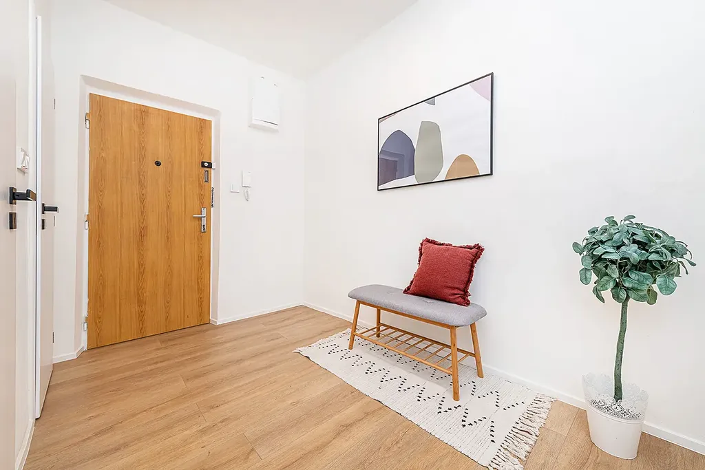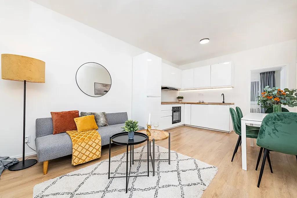 Dispozici bytu tvoří dvě neprůchozí ložnice, velkorysý obývací pokoj spojený s kuchyní, prostorná koupelna se sprchovým koutem a samostatný záchod.
