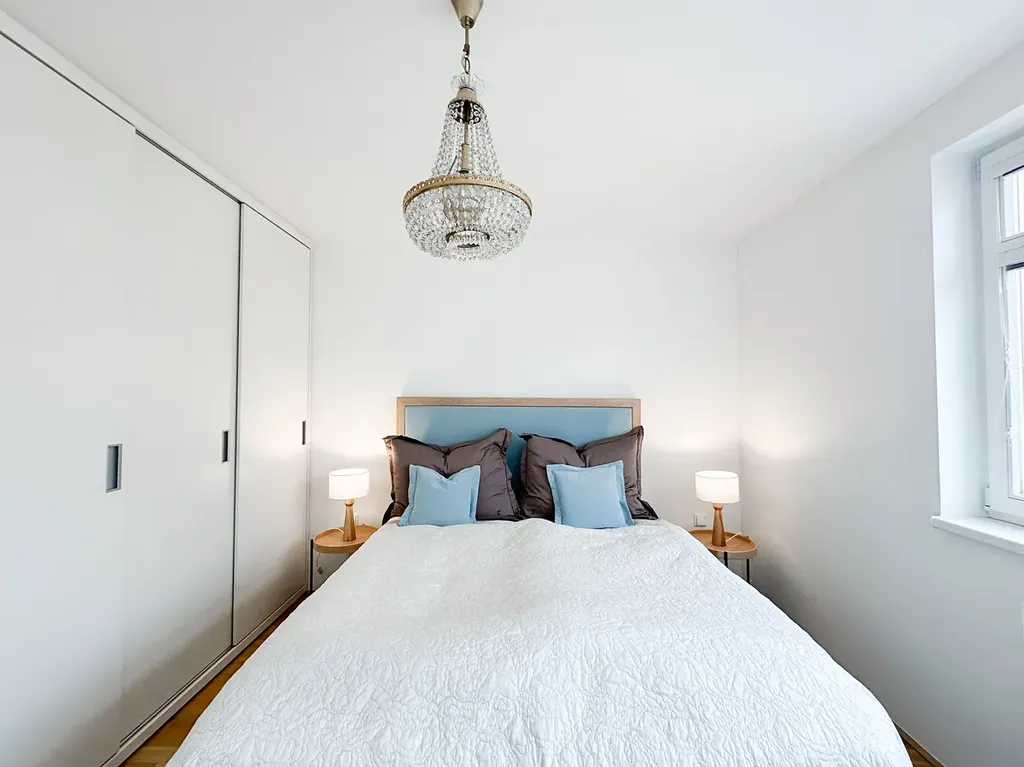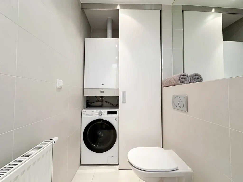 Byt je vhodný pro dvě osoby nebo pro pár s dítětem. Vstup do budovy je zabezpečen čipem a zajišťuje soukromí pouze pro vlastníky bytů.