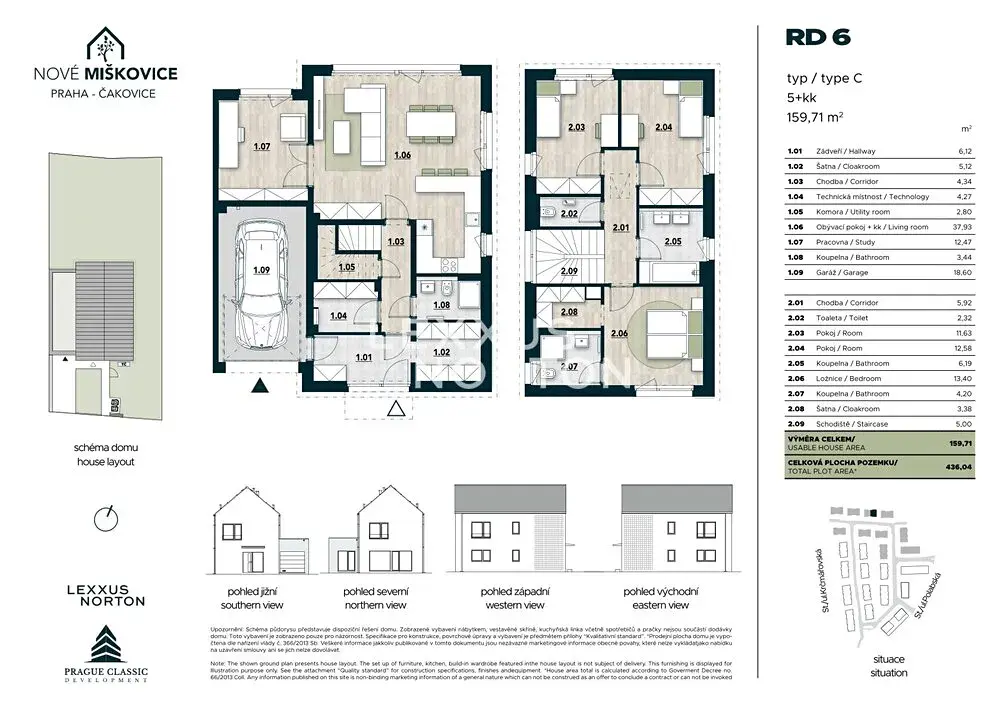Nabízíme k prodeji prostorný rodinný dům o dispozici 5+kk v rezidenčním projektu Nové Miškovice, který vyniká velkorysou užitnou plochou 159,71 m² a vlastním pozemkem o velikosti 379,82 m². Dispozice domu je navržena s důrazem na pohodlný rodinný život, dostatek soukromí a přirozené propojení interiéru se zahradou.
