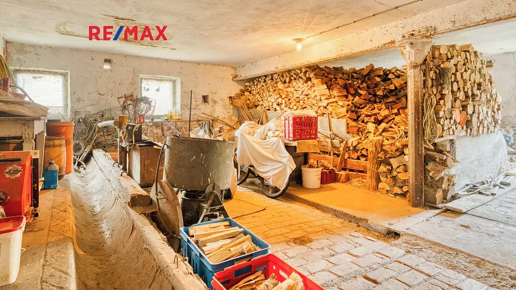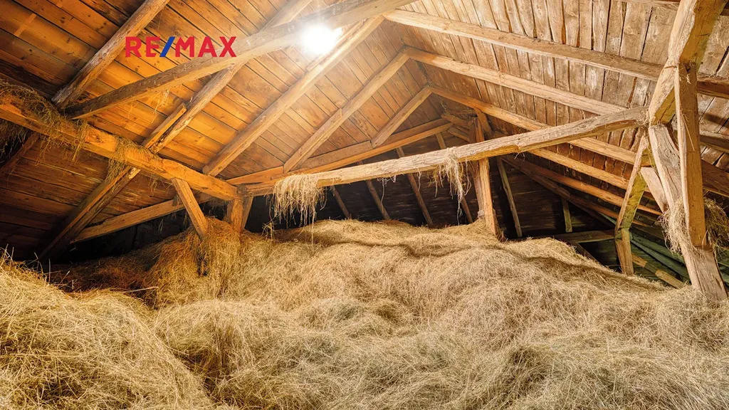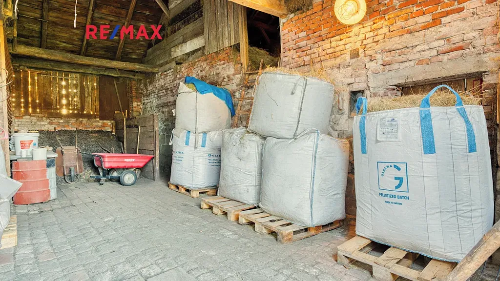 Na dům bezprostředně navazuje velká stodola a další hospodářská část, která tvoří s domem praktický celek. Ve stodole je dostatek prostoru pro uskladnění dřeva na topnou sezónu, parkování techniky, čtyřkolek či zahradních strojů, a zároveň zde najdete klasický seník. Své místo tu může mít i dílna, prostor pro drobné hospodářství nebo kryté stání pro auto. Díky výšce a členění stodoly je zde také potenciál pro případné další využití – např. ateliér, domácí zázemí pro koníčky či sklad pro menší podnikání.