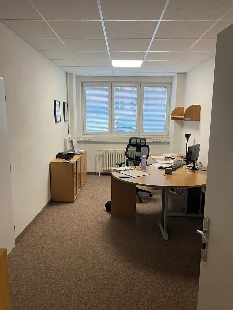 Další kancelářské prostory k pronájmu jsou ve 2 patře objektu. Kancelář 14 m2, 18 m2 a 18 m2. Na patře je také kuchyňka a dámské i pánské toalety.