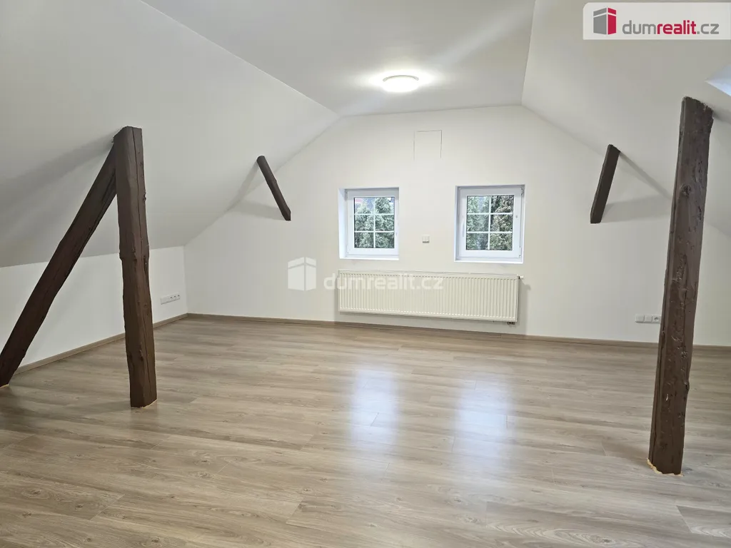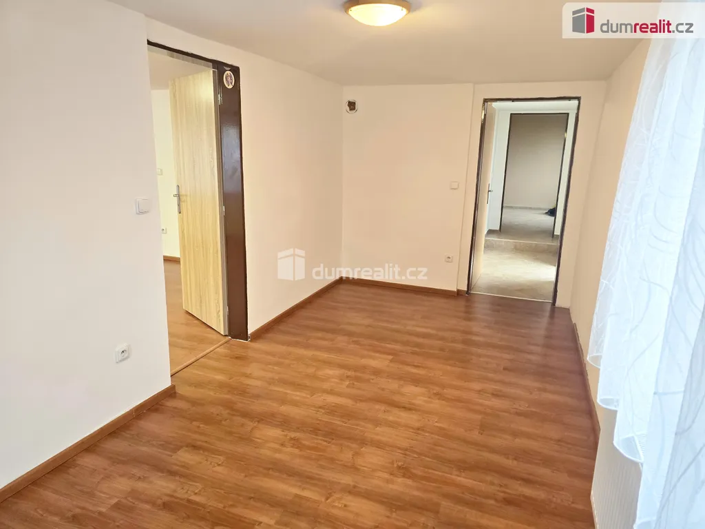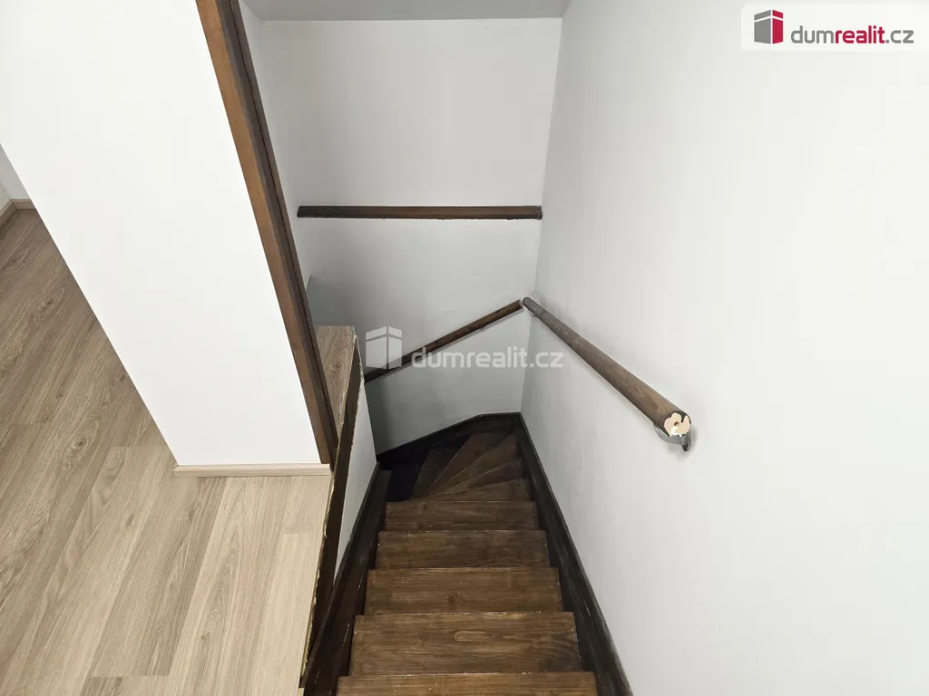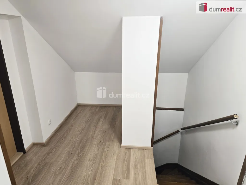 V patře je jedna velká místnost vhodná jako velký obývací pokoj nebo ložnice. Po celém domě jsou nové plovoucí podlahy,keramická dlažba, nová plastová okna se žaluziemi. Za domem je zahrada s menší terasou.