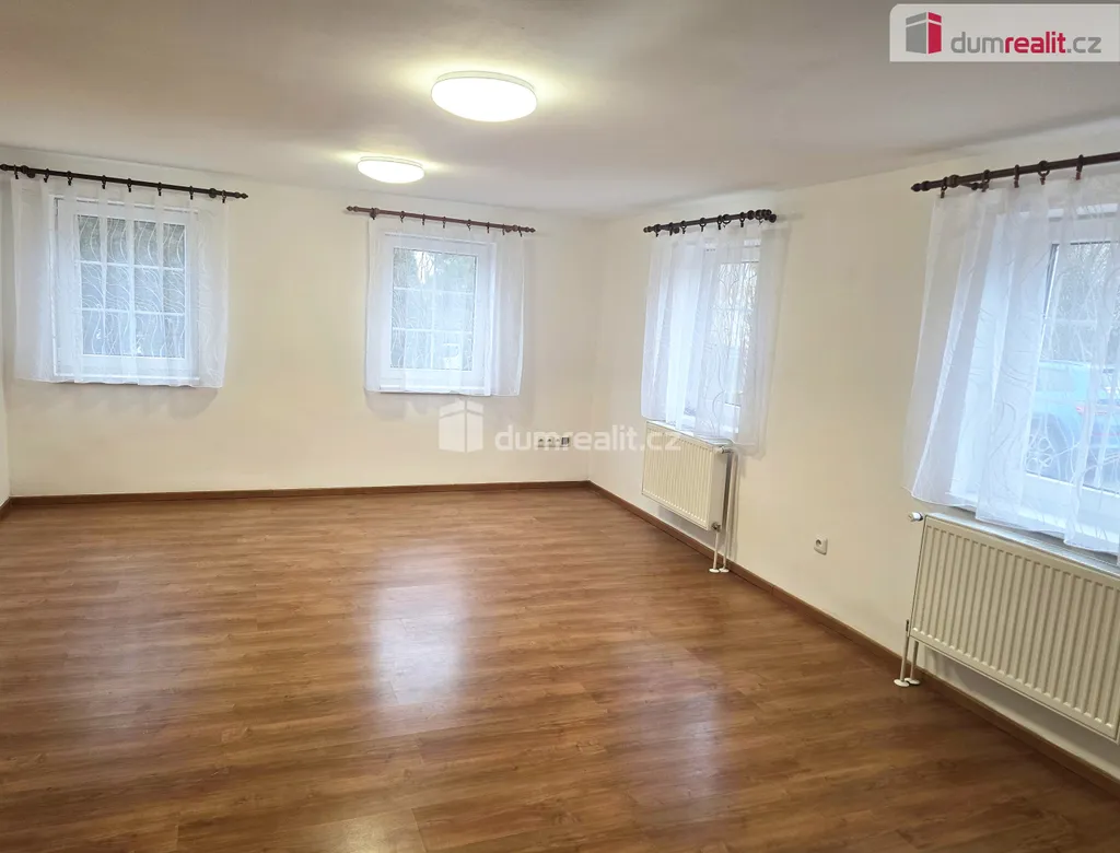 pronájem rodinného domu 4+1 v obci Horní Bousov. Dispozice domu v přízemí: průchozí komunikační chodba se schodištěm do podkroví a ven na zadní terasu. Z chodby se pak dostaneme do koupelny (se sprchovým koutem, umyvadlem a WC), dětský pokoj, ložnice, jídelna která je opticky propojená s kuchyní. Kuchyňská linka má vestavěnou troubou, varnou deskou a digestoř. V jídelně jsou instalována nová krbová kamna s rozvodem do radiátoru a jako druhá varianta je v domě nainstalovaný elektrický kotel.