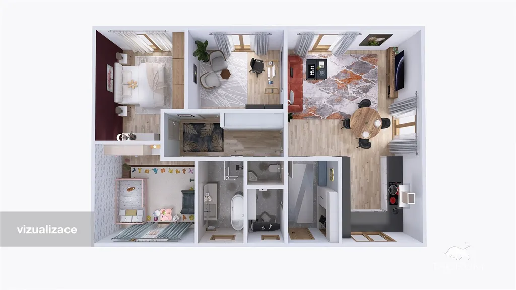 Představu o dispozici domu je možné si udělat z 3D virtuální prohlídky zde v inzerci.