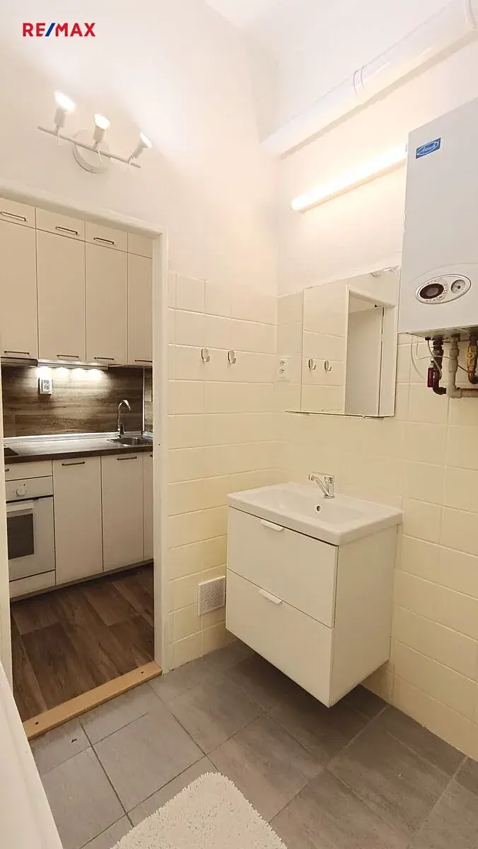 Byt se sestává z obývacího pokoje, malé kuchyňky, koupelny s WC a spíže. Byt je z roku 2022 po rekonstrukci, s novou kuchyňskou linkou, novými spotřebiči, nové podlahové krytiny a vnitřní dveře, nová elektroinstalace a rozvody vody a odpadu. Byt je vytápěn radiátory, napojenými na plynový kondenzační kotel s průtokovým ohřívačem vody.