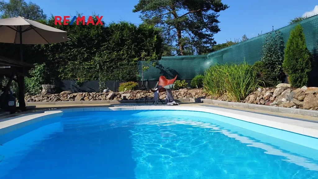 Vlastní příjezdovou cestou po průjezdu plně automatickými vraty se dostanete na zpevněné parkoviště za domem. Brána má i samostatné ovládání pro ubytované hosty. Prostorná zahrada vybízí k posezení u krbu pod dřevěnou pergolou, nebo novému využití dle přiložené vizualizace. Vaše hosty jistě příjemně překvapí krytý venkovní bazén o velikosti 18 m2 s integrovaným tepelným čerpadlem.