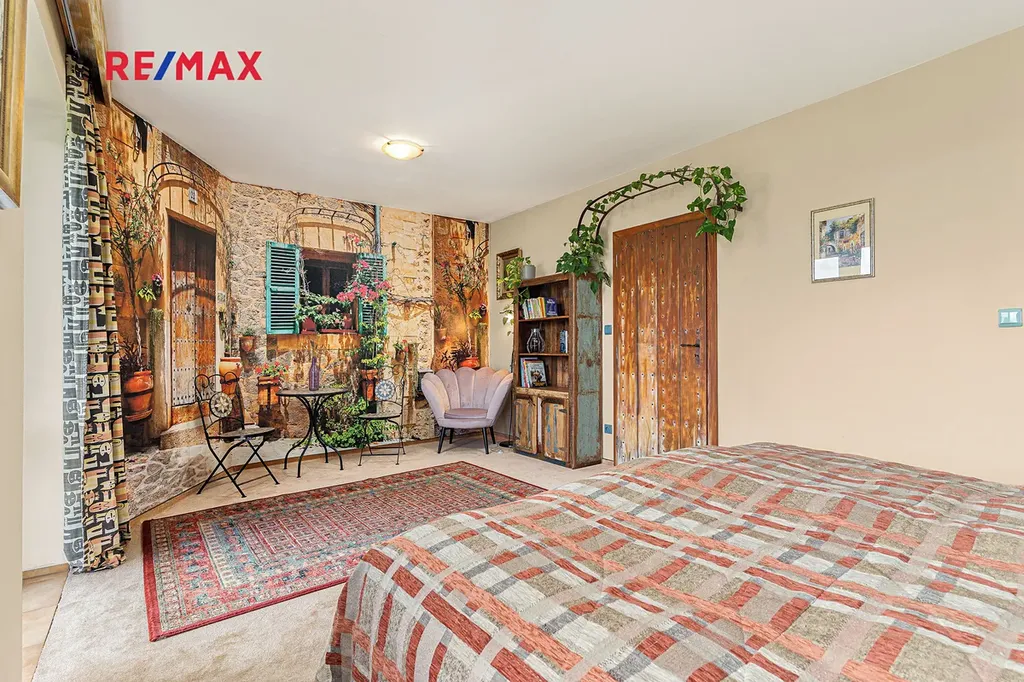 Další ložnice s vlastní koupelnou s WC je přístupná z chodby domu nebo také samostatným vchodem a vlastním zádveřím s úložným prostorem – ideální pro hosty, klienty, jako soukromé studio nebo provozovna.