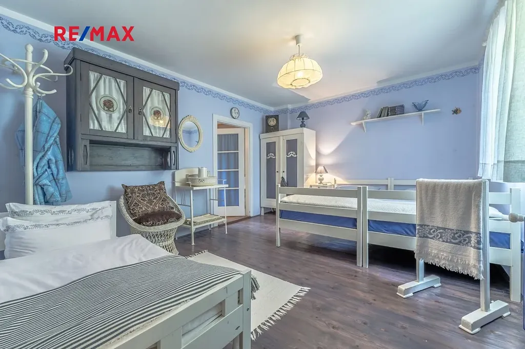 Chalupa je řešena jako 7+kk, což znamená dostatek prostoru pro rodinné chvíle i velkolepé oslavy s přáteli. Relaxujte u kachlových kamen, nasávejte sluneční paprsky na terase, nebo se ponořte do knihy s výhledem na zelené louky. A pokud máte chuť, prozkoumejte okolní lesy a louky, které vás obklopují.