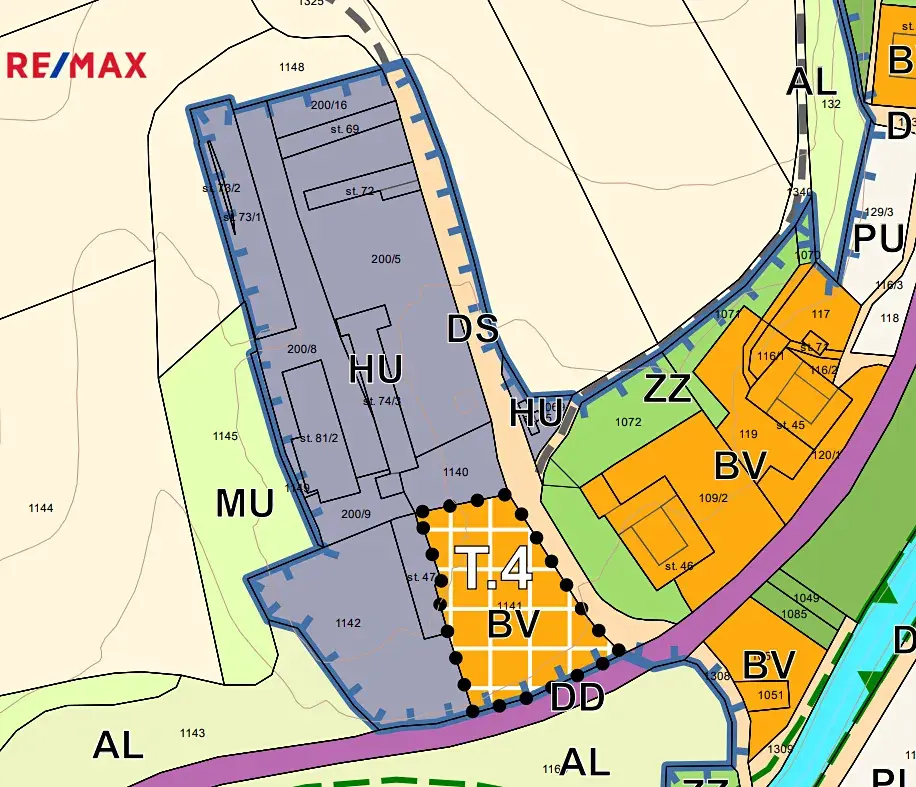 Hlavní část areálu je vedena územním plánem jako HU - smíšené výrobní všeobecné plochy. Okrajové části jsou vedeny územním plánem jako AL, MU nebo AP, tj., trvalé tvnaté porosty, smíšené krajinné všeobecné plochy nebo orná půda. V katastru nemovitostí je většina ploch mimo stavby vedena jako ostatní plocha.