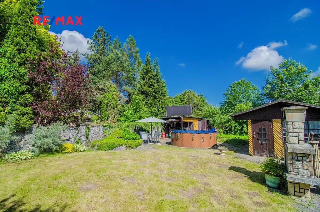 Plocha je 666 m2. Zahrada je současným majitelem využívaná k rekreaci - je zde malá chatka, bazén, sklad nářadí, ovocné stromy, záhony. Příjezd je z hlavní silnice.