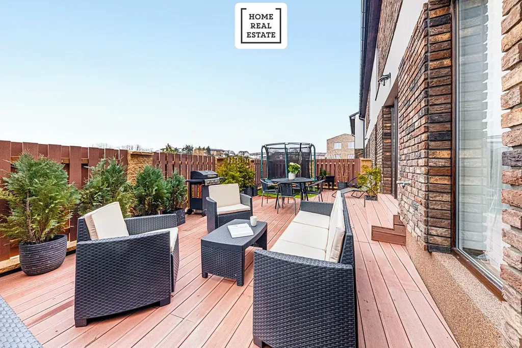 Tento rodinný dům o dispozici 4+KK se nachází na pozemku o celkové výměře 201 m² a zahrnuje dvě parkovací stání před domem, zahrádku o velikosti přibližně 20 m² a terasu o rozloze cca 50 m².