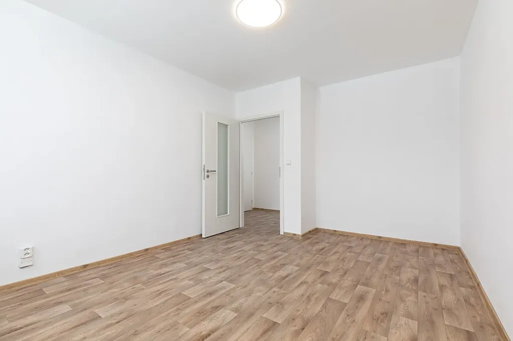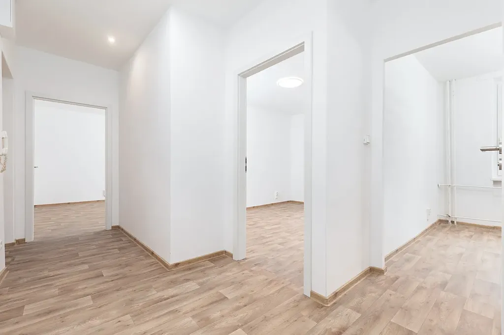 Základem rekonstrukce je kompletně vyzděné bytové jádro, nová elektroinstalace, podlahy v celém bytě jsou srovnané do jedné roviny. Podlahová krytina je vinylová. Nové jsou také interiérové dveře vč. zárubní.
