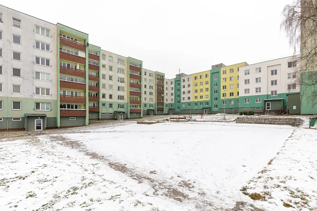 Okna bytu jsou do vnitrobloku, kde je dětské hřiště a zeleň.