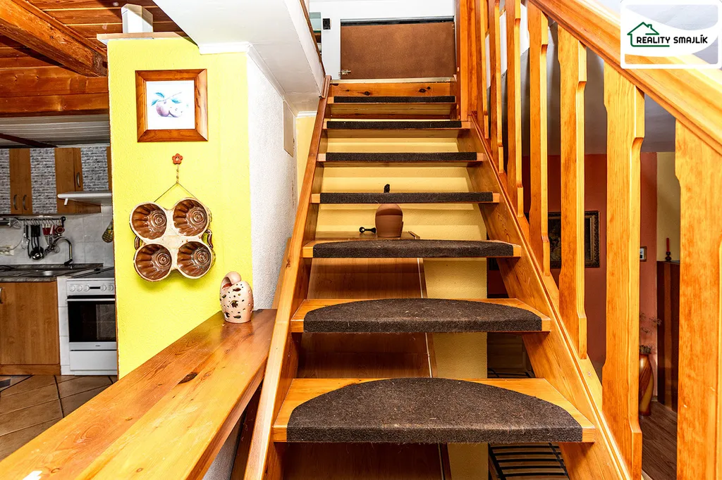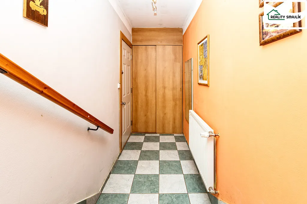 Jedná se o samostatně stojící zděný dvoupodlažní rodinný dům (přestavba chaty) atypický řešená. Dispozice: Závětří, garáž s dílnou (34m2), předsíň, hala, WC místnost, kuchyňský kout, pokoj, schody a pokoj. V prostorné koupelně je umístěný sprchový kout, pračka, umyvadlo a WC. V podkroví - 2x šatna, ložnice. Jedná se o otevřený mezonetový dům, vhodný pro ideálně 2 dospělé lidi. Dům je částečně podsklepený, ve sklepě je technická místnost, el. boiler a domácí vodárna. Napojeno na veřejný rozvod elektřiny. Výhodou je vlastní vrtaná studna, šetří náklady a možnost bezproblémové zalévání zahrádky. Odpadní vody svedeny do kovové jímky (6m3). Hlavní ohřev domu zajišťuje elektrokotel s rozvody ústředního vytápění po domě a dále možnost kombinace s vytápěním krbovými kamny. Ohřev užit. teplé vody zajišťuje el. boiler. Podstatná část vyobrazeného vybavení domu, může zůstat popř. dům bude zcela vyklizený.