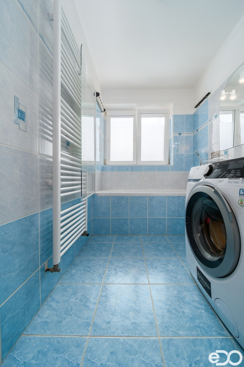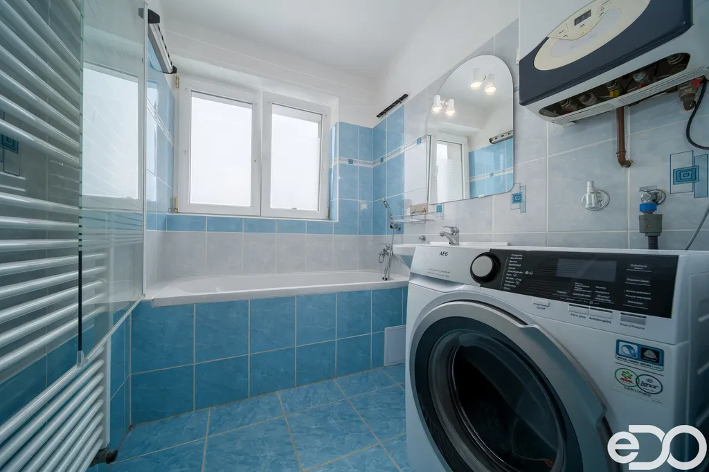 Koupelna je zděná a její velkou výhodou je okno, které přináší denní světlo i přirozené větrání – detail, který oceníte každý den.