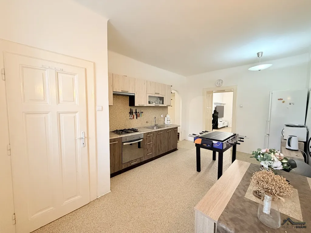 Kuchyně je vybavena novější kuchyňskou linkou s plynovou varnou deskou, horkovzdušnou troubou a digestoří. Byt působí velmi příjemně a nabízí dostatek prostoru pro pohodlné bydlení.