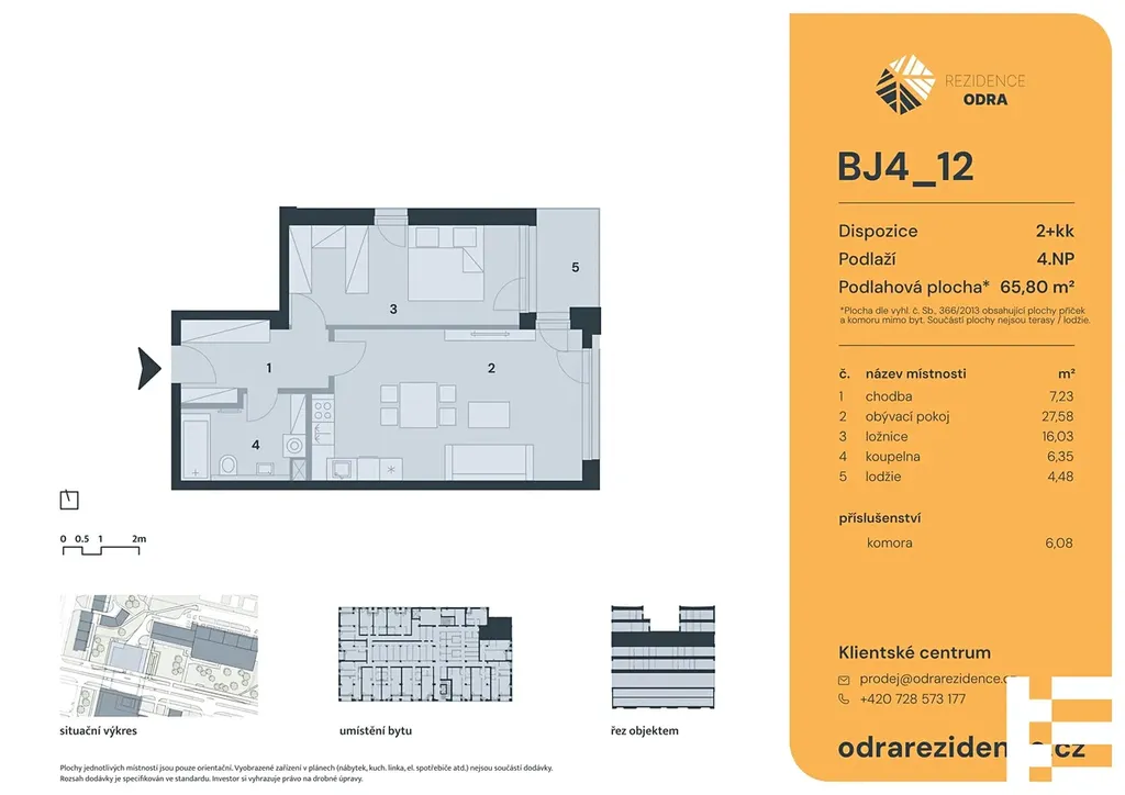 Hledáte nový domov v klidné a přitom skvěle dostupné lokalitě? Rezidence Odra je moderní projekt s duší i budoucností, který vzniká na místě bývalého obchodního centra v pražských Bohnicích. Nyní vám nabízíme konkrétní volnou jednotku 2+kk o ploše 65,8 m², nacházející se ve 4. nadzemním podlaží budovy ve fázi dokončení.