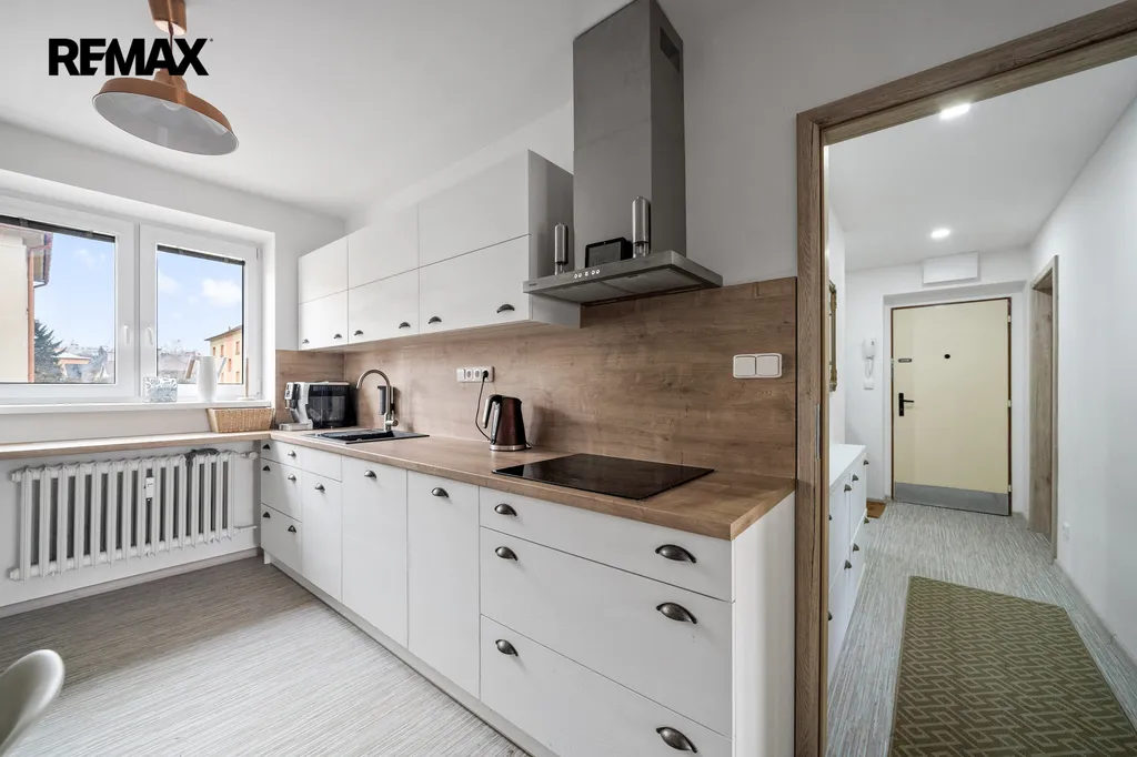 Ve výhradním zastoupení společnosti RE/MAX Future nabízíme k prodeji moderní světlý byt s balkonem o dispozici 2+1, který se nachází ve 2. nadzemní podlaží cihlového bytového domu v klidné části města Dobrušky v ulici Čsl. armády. Velmi zdařile zrekonstruovaný byt o celkové podlahové ploše 68 m2 (včetně 2 sklepů - 12,1 m2 a balkonu 2,36 m2) a užitné ploše 54 m2 má následující dispozici - kuchyň, obývací pokoj, pokoj, chodbu, koupelnu se sprchovým koutem a toaletu. V rámci kompletní a pečlivé rekonstrukce byly provedeny tyto práce: nové rozvody a omítky v celém bytě, nové podlahoviny v kuchyni a na chodbě, v pokojích renovované parkety, kompletně zrekonstruovaná koupelna, nové interiérové dveře s obložkami, zabudována moderní kuchyňská linka s vestavěnými spotřebiči přímo na míru od truhláře. Prostorná chodba je vybavena nábytkem na míru a to vestavěnou skříní a menšími skříňkami.