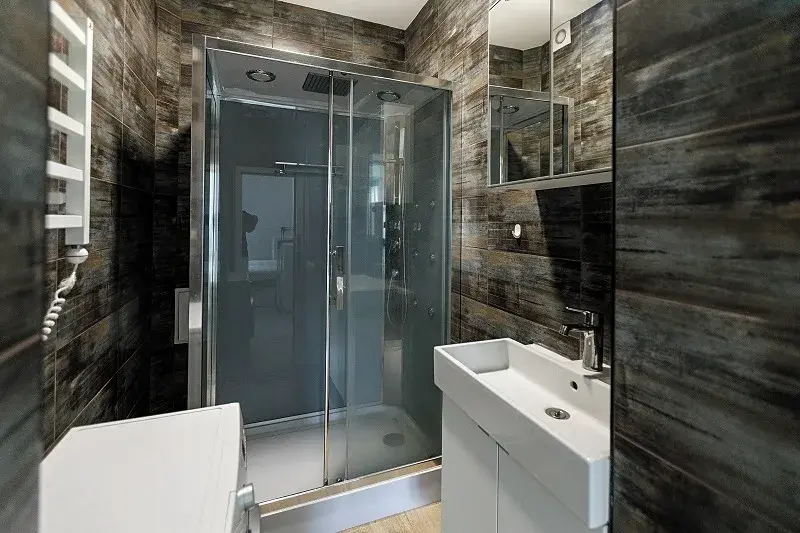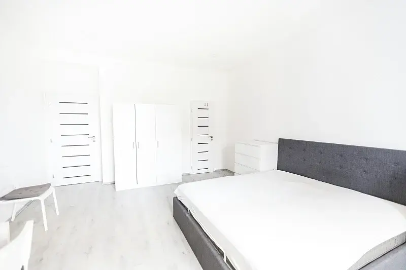 Byt má velmi příjemnou dispozici, kdy oba obytné pokoje jsou přístupné z centrální předsíně při které se nachází samostatná toaleta(0.8 m2) a komora(0.6 m2). Byt je světlý, ložnice(22.2 m2) i obývací pokoj(19,3 m2) jsou orientované na východ. Koupelna(3,2 m2) se sprchovým koutem se vstupem z ložnice. Ohřev vody bojlerem. Topení elektrické.