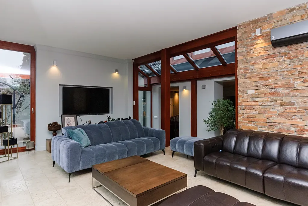 • Architektonicky řešený obývací prostor se skleněnými stěnami a proskleným stropem, který vytváří atmosféru zimní zahrady;