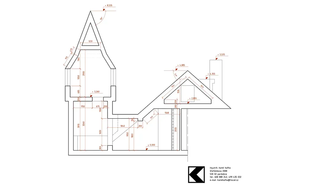 4. NP: úložné prostory nad obývacím pokojem: 4,1 m², patro na spaní: 10,7 m², věž (horní část): 6,1 m²