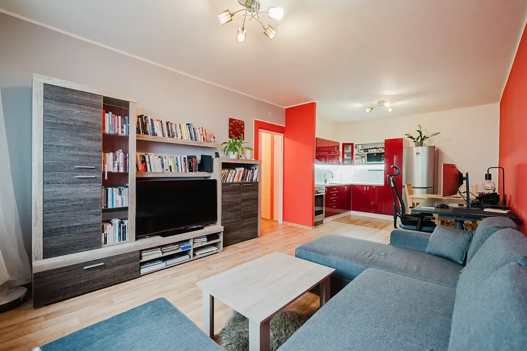 V bytě proběhla kompletní rekonstrukce – moderní kuchyně, nové plovoucí podlahy, interiérové dveře, koupelna s vanou a samostatná toaleta.