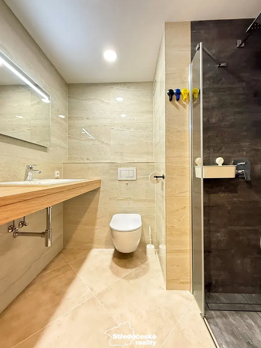 - zděné bytové jádro - koupelna se sprchovým koutem, WC, umyvadlem a podlahovým topením